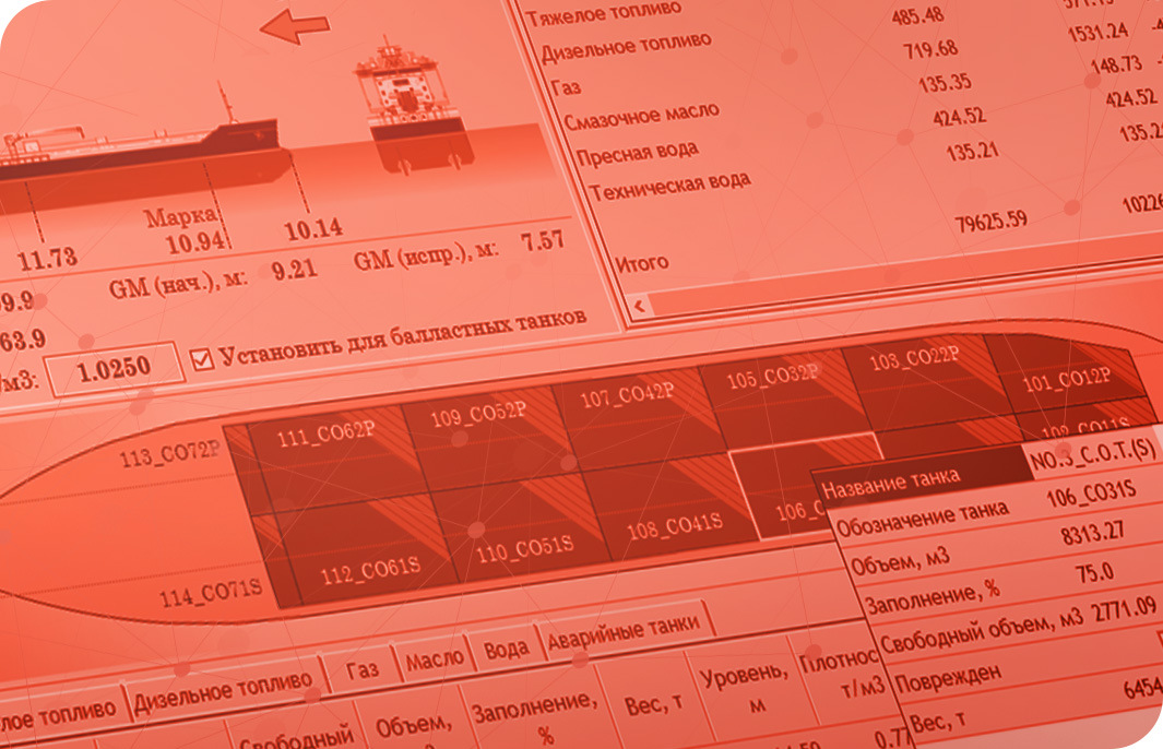 - отображение состояния заполнения грузовых танков и посадки танкера в режиме офлайн;